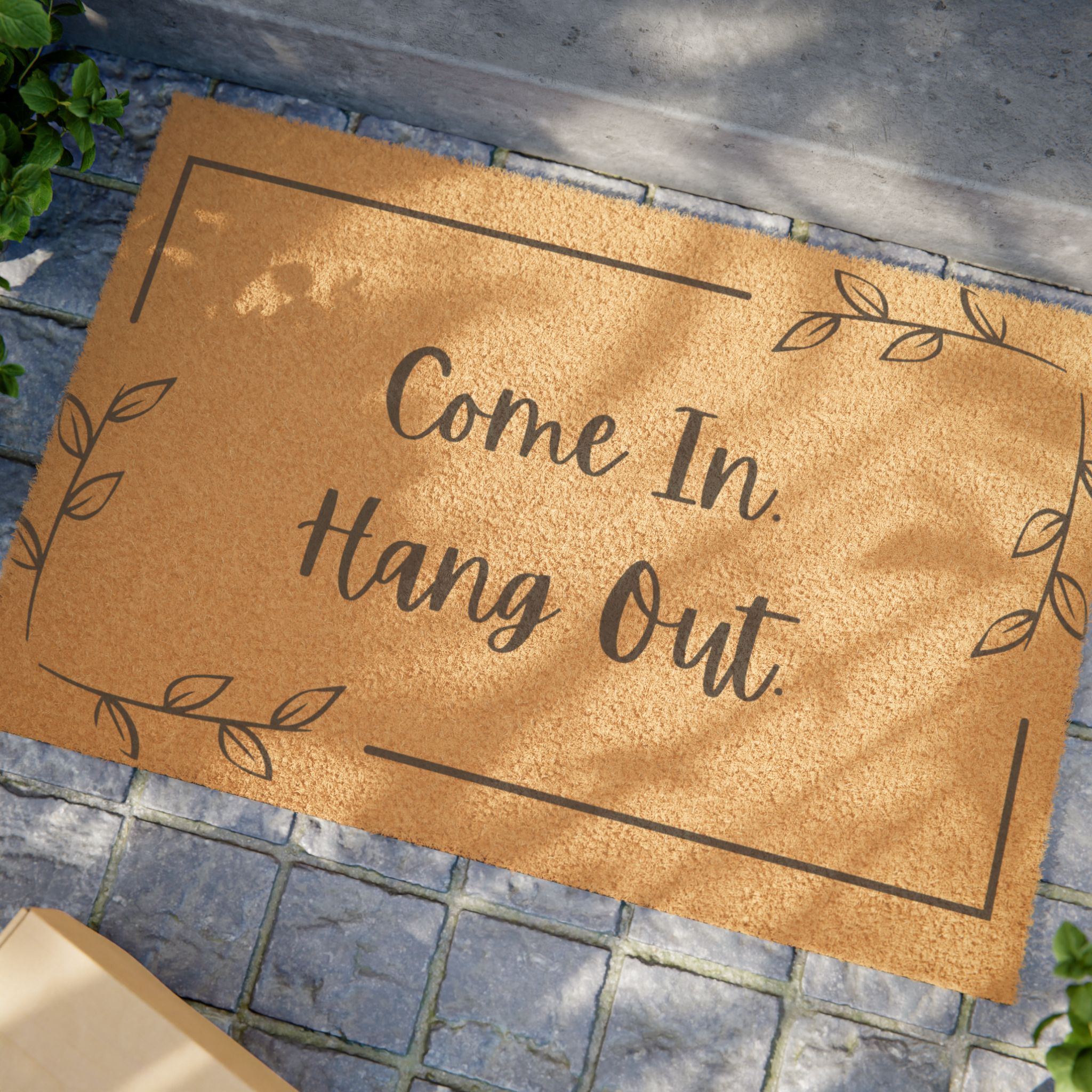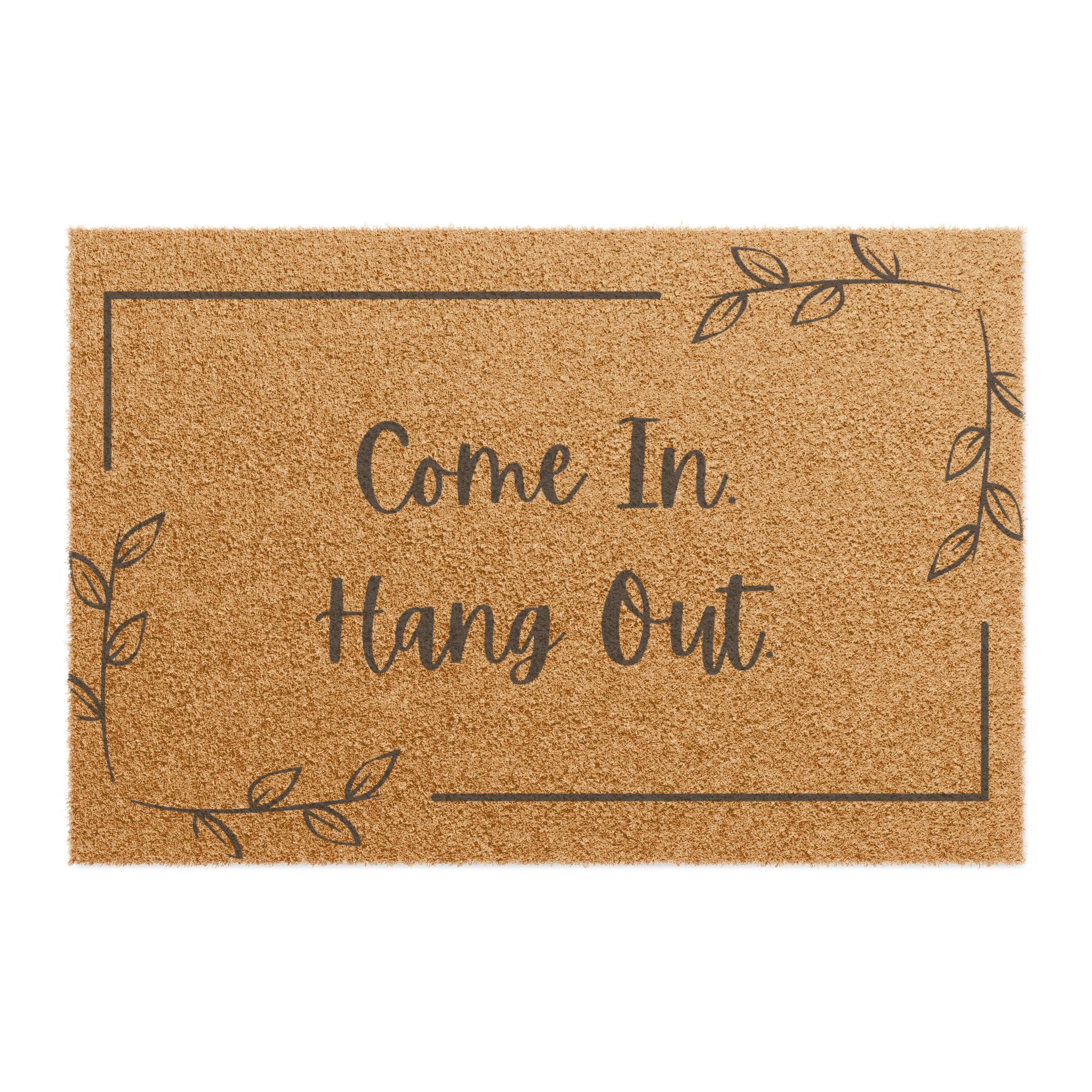 This fun welcome mat invites guests to come in and hang out with warmth and charm. Crafted from sustainable, grade-A tufted coconut coir, it radiates an inviting atmosphere right at your doorstep. The playful design featuring ‘Come In. Hang Out.’ adds a friendly vibe perfect for any home. This fun welcome mat not only enhances your entryway but also serves as a reminder of the cherished moments spent with friends and family. Ideal for homeowners looking to elevate their outdoor space, it’s great for seasonal gatherings, housewarmings, or even as a thoughtful gift during the holiday season. Enhance your front porch aesthetics while ensuring safety with its anti-slip backing, making it a practical addition to your home decor.